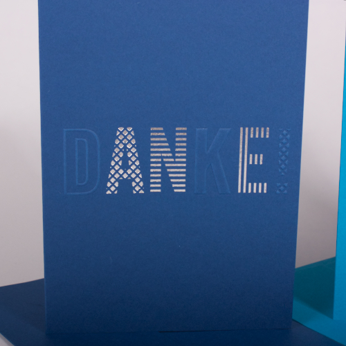 Für diese Karte wurde edles Naturpapier mit Prägedruck in Silber und mit Blindprägung veredelt. So wird das Danke sogar spürbar.