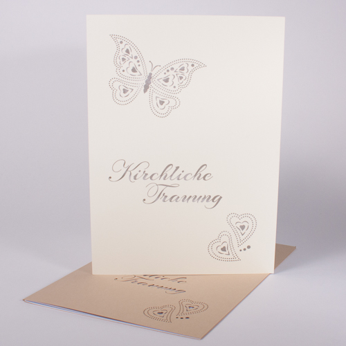 Mit den Kirchenheft-Umschlägen im Stil Schmetterling könnt ihr die Kirchenhefte passend zu eurer Papeterie ganz einfach selbst machen. Druckt einfach die Inhaltsseiten auf A4-Papier aus, falzt sie auf A5 und legt sie in den Umschlag. Besonders schön wird euer Kirchenheft, wenn ihr es noch mit einem Seiden- oder Spitzenband verbindet.