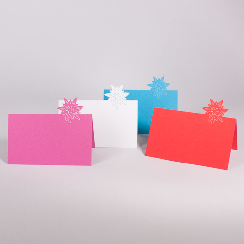Passend zu den Menükarten gibt es die Namenskarten im Stil Edelweiß, die du einfach auf den jeweiligen Platz stellst und die deinen Gästen die notwendige Orientierung bei der Suche nach dem richtigen Sitzplatz bieten. Das hochwertige Naturpapier bringt nichts aus der Fassung, die Farben sind sehr vielfältig und sicherlich nach deinem Geschmack und die Oberfläche der Karten eignet sich zum Eintragen der Gästenamen.